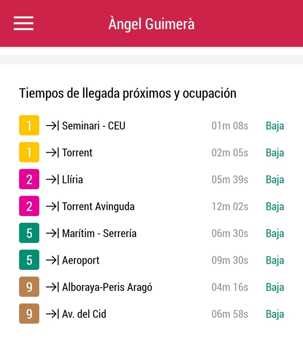 Metrovalencia ofrece a sus usuarios información en tiempo real desde su aplicación oficial sobre el grado de ocupación de los trenes en circulación, a su paso por las estaciones de metro de la red.