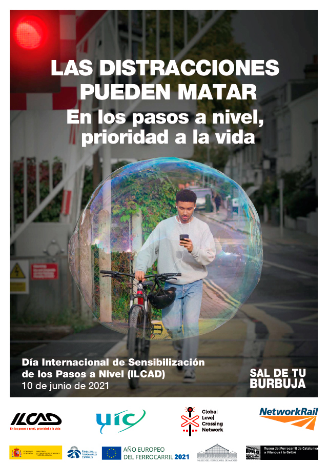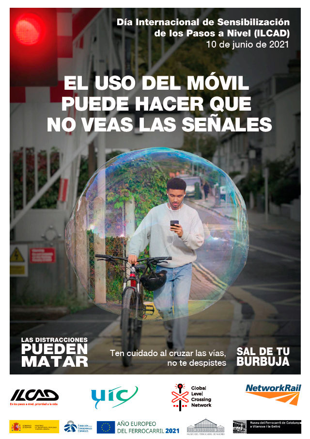Y ello sin eludir la responsabilidad individual de los usuarios que pueden cruzar indebidamente los pasos a nivel de forma deliberada, sin respetar las reglas de seguridad básicas ni las normas viales, cuando las barreras están cerradas o la señalización lumínica parpadea. Pero también pueden hacerlo por distracción, falta de atención, o prisa, con consecuencias dramáticas y, en algunos casos, con resultado de lesiones graves o muerte. El tema de la campaña del ILCAD en 2021 es la distracción, bajo el lema “¡Las distracciones pueden matar!”.