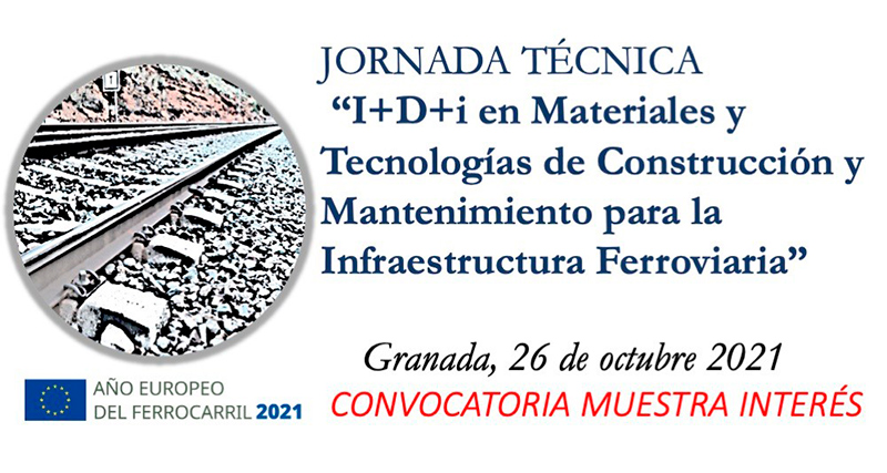 El próximo 26 de octubre se celebra en la Escuela Técnica Superior de Ingenieros de Caminos Canales y Puertos de la Universidad de Granada, la jornada técnica "I+D+i en Materiales y Tecnologías para la Construcción y Mantenimiento de Infraestructuras Ferroviarias".