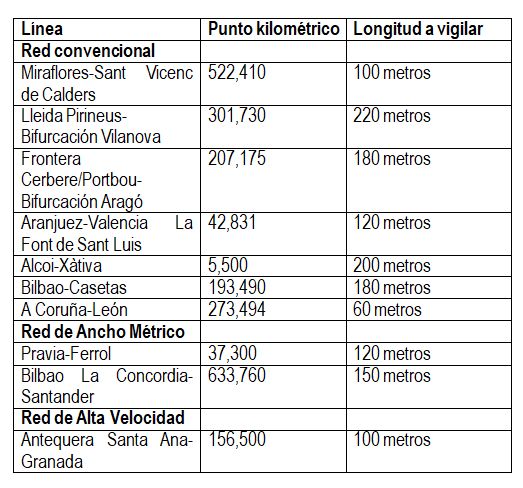 El sistema se instalará en diferentes puntos de la RFIG situados en zonas de desmonte, en las que es probable que se produzcan movimientos de ladera asociados, que pueden poner en riesgo el correcto funcionamiento de la red. En concreto, se trata de los siguientes puntos, en los que se instalarán un total de veintiséis cámaras: