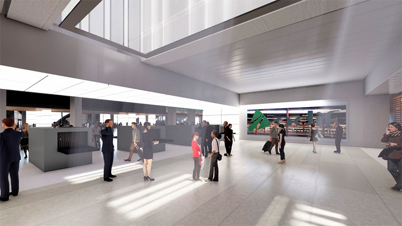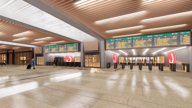 El vestíbulo de la estación se ampliará para poder abarcar y conectarse con estas nuevas vías y andenes, que se montarán hacia el lado este, y además se remodelará en su totalidad.