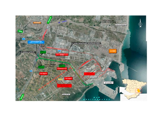 Estos materiales se destinarán al nuevo trazado proyectado en vía única electrificada de ancho mixto hasta las instalaciones auxiliares del puerto. La zona de actuación comprende un total de 5,6 kilómetros de longitud de plataforma en la que se construirán dos ramales diferenciados, que confluyen en un tercero, y que constituyen los enlaces para el acceso de la línea Valencia-Tarragona por los lados sur y norte hacia el puerto.