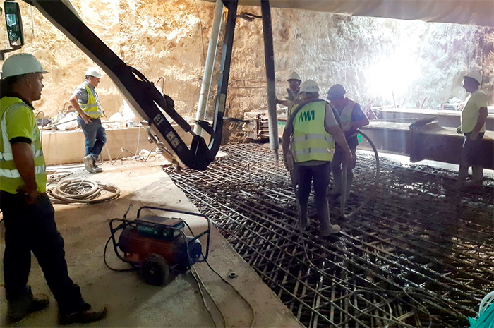 Desde el inicio de las obras de terminación de dicho tramo, el 31 de julio de 2018, se han empleado alrededor de 50.000 metros cúbicos de hormigón en las losas y pantallas que conforman el recorrido bajo tierra del suburbano.