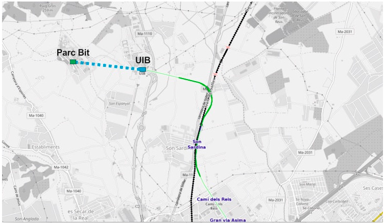 El nuevo trazado, de 1,4 kilómetros, irá en paralelo al norte de la carretera de acceso al Parc Bit desde la UIB durante un kilómetro y después se desviará hacia el sur para llegar al aparcamiento sur del Parc Bit, donde se construirá la estación. Esl nuevo tramo tendrá una parte soterrada, otra en trinchera y la parte final en superficie.