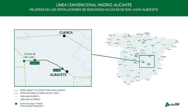 - Instalación de un nuevo enclavamiento electrónico en las estaciones de La Roda, Minaya, Villarrobledo y Campo de Criptana.
