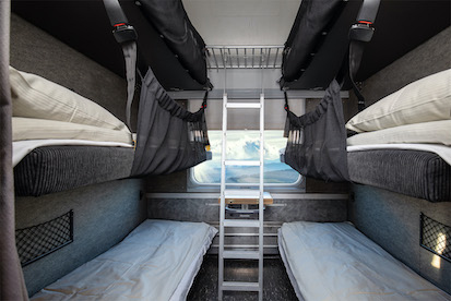 Las salidas se iniciaron la primera semana de febrero y se extenderán hasta la tercera semana de marzo y aprovechan las vacaciones de invierno en Suecia y Dianmarca, tracionalmente dedicadas a practicar deportes de invierno. El tren nocturno ofrece compartimentos de seis camas camas de 1,80 centímetros de longitud y sesenta de ancho.