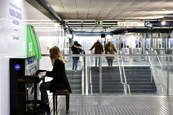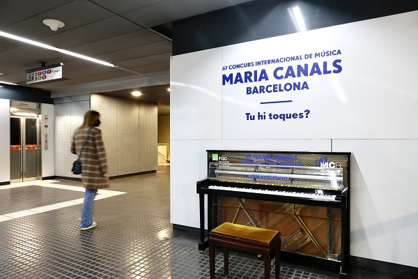 El  vestíbulo de la estación de Gràcia de la línea Barcelona-Vallès de FGC acoge hasta el próximo 7 de abril, por la sexagésimo sexta edición del concurso internacional de música Maria Canals, un piano que los usuarios tienen a su disposición para compartir su interpretación con el resto de pasajeros.