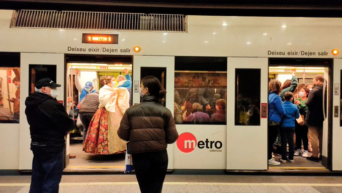 Metrovalencia ha ofrecido siete millones de plazas de metro y tranvía con motivo de las Fallas 2022 con el servicio en los dos fines de semana previos a las fiestas, el 5 y 6 y el 12 y 13 de marzo, más los días principales,15, 16, 17, 18, 19 y madrugada del 20 de marzo.