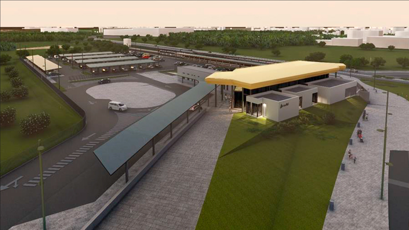 Por otro lado, se proyecta un aparcamiento en superficie de doscientas plazas para automóviles, de las que diez estarán reservadas para personas de movilidad reducida, y espacio para motocicletas y bicicletas. Asimismo, se incluyen áreas para subida y bajada de viajeros, y estacionamiento de taxis. Tanto el aparcamiento como la parada de taxis y el espacio para subida y bajada de viajeros contarán con marquesinas.
