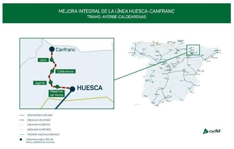 La licitación de este contrato supone un nuevo impulso al Plan de mejora y adaptación para el tráfico internacional de la línea Huesca-Canfranc. Se siguen así potenciando el conjunto de actuaciones para la reapertura de la línea Zaragoza-Canfranc-Pau y para garantizar su interoperabilidad, tras la publicación oficial del Estudio Informativo para la implantación del ancho estándar entre Huesca y Canfranc y la adjudicación, por parte de Adif, de las obras de renovación entre Plasencia del Monte y Ayerbe, además de la reciente licitación de la renovación del tramo entre Jaca y Canfranc.