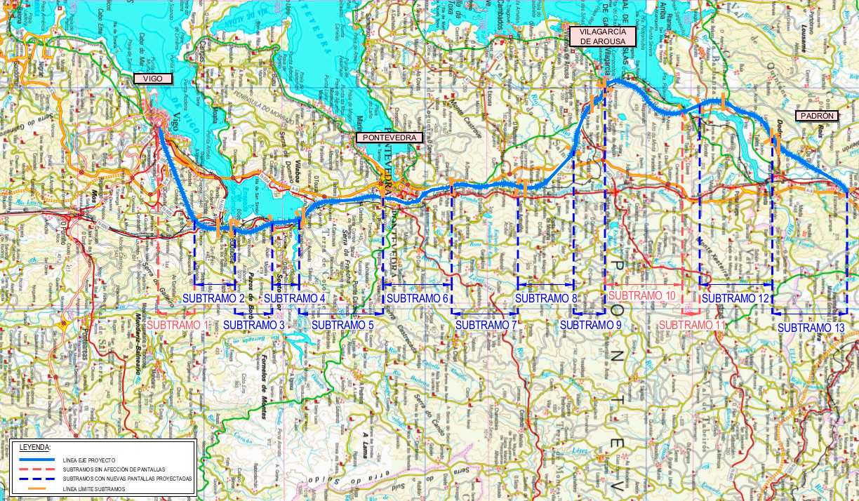 Adif Alta Velocidad ha adjudicado al consorcio formado por las empresas Civis Global y Obras Públicas y Regadíos el contrato de obras de ejecución del proyecto de instalación de protecciones acústicas en el tramo Vigo-Padrón del Eje Atlántico de Alta Velocidad, por un importe de 21.515.572 euros.