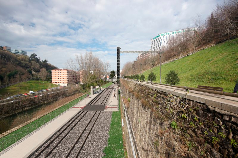 La incorporación del andén de Los Caños acercará la red tranviaria a algunas zonas de los barrios de Santutxu y La Peña.