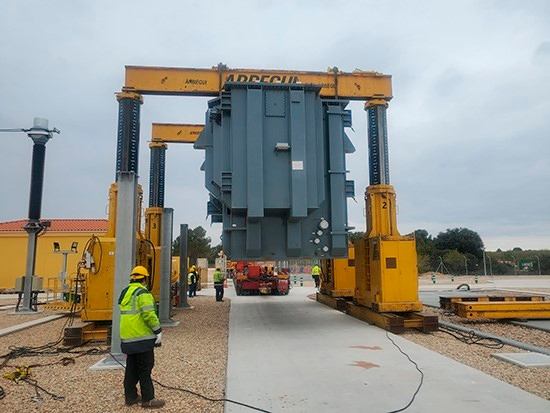 La compañía especializada en transportes especiales Arbegui ha llevado a cabo el transporte por ferrocarril y carretera de un transformador de potencia de 282 toneladas de peso desde el puerto de Valencia a una subestación eléctrica en el municipio conquense de Tébar.