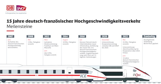 Los Ferrocarriles Franceses, SNCF, y los Alemanes, DB, celebran los quince años de su cooperación en alta velocidad con un mensaje optimista y una promoción especial.