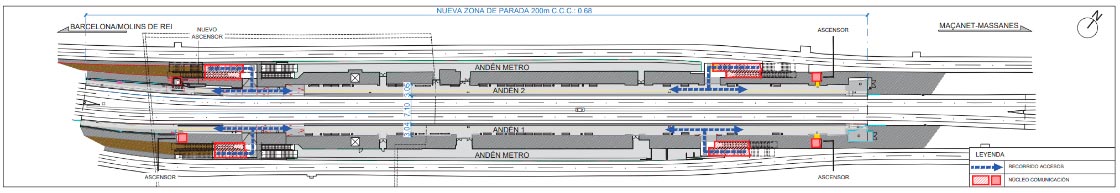 Las actuaciones contemplan la prolongación de andenes de la estación a dosecientos metros de longitud, lo que permitirá incrementar la oferta de plazas en los trenes de las líneas R1, R3 y R4. Así podrá operar composiciones formadas por dos unidades Civia de cinco coches, con longitud de doscientos metros y capacidad para prácticamente 2.000 personas. Además, de los 211 nuevos trenes de cercanías de Renfe, 35 tienen doscientos metros de longitud y 176, cien metros lo que permirá so operación en doble composición.