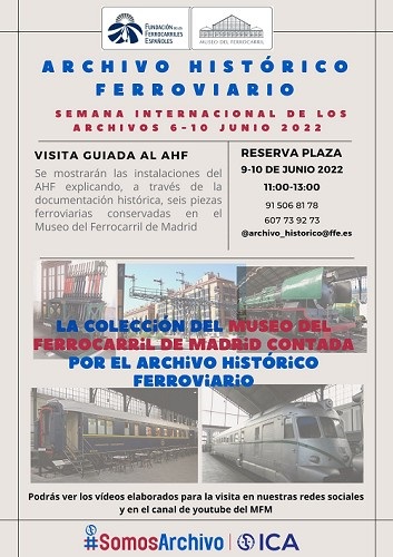 El Archivo Histórico Ferroviario (AHF) participará en la cuarta Semana Internacional de los Archivos.  El AHF de la Fundación de los Ferrocarriles Españoles se une a esta celebración con la organización de varias actividades. Para los días 9 y 10 de junio se han programado visitas guiadas al Archivo y la Biblioteca Ferroviaria para grupos de hasta 15 personas, previa inscripción en: archivo_historico@ffe.es.