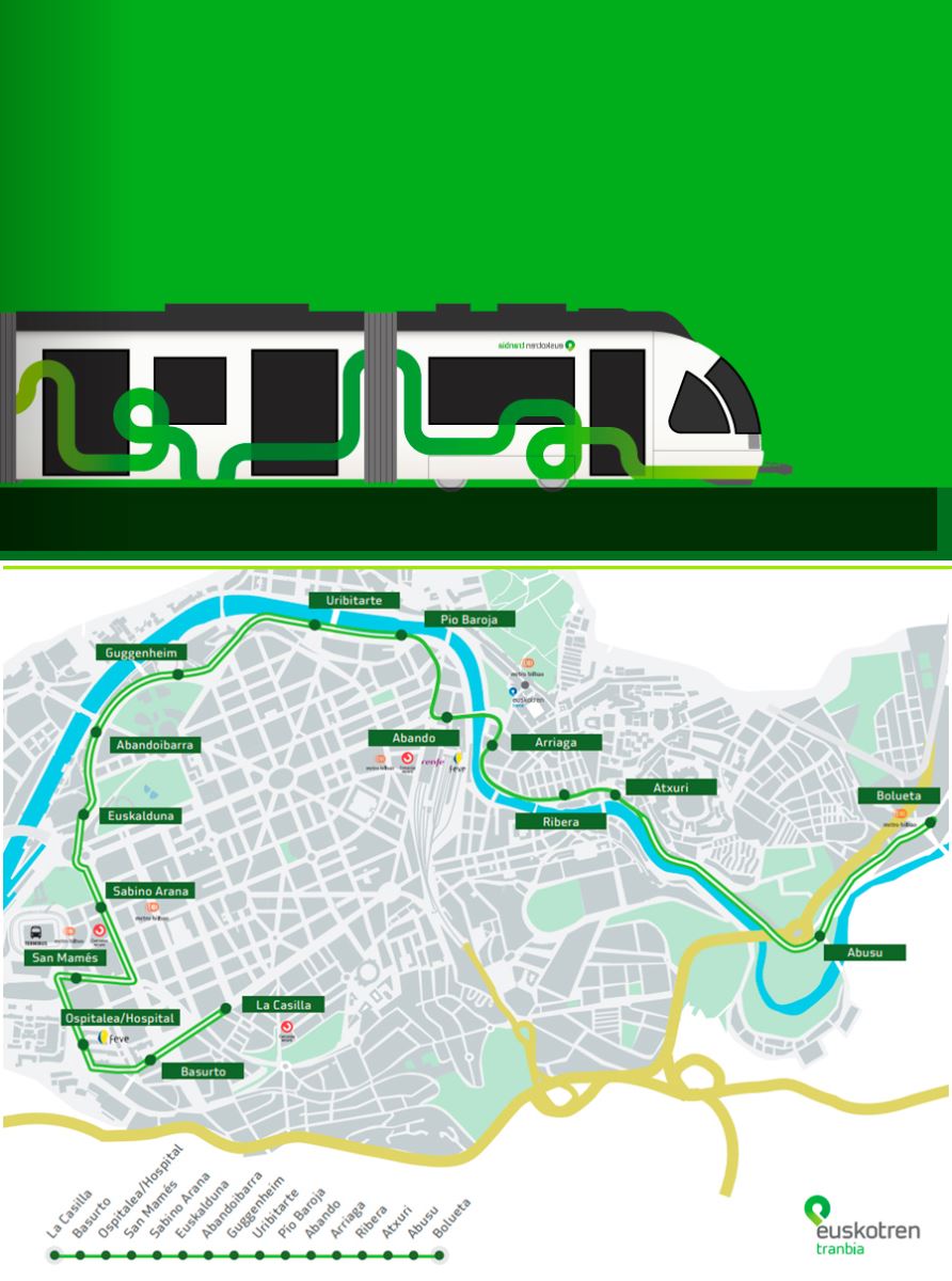 Los sábados, domingos y festivos, el servicio comienza una hora más tarde que aunque finaliza a la misma hora. Esta programación de frecuencia se aplica en toda la red del tranvía de Bilbao, una sola línea que comienza en la estación de Bolueta y llega al apeadero de La Casilla. En su recorrido tiene dieciséis paradas más, que dan cobertura a los diferentes barrios de la ciudad.