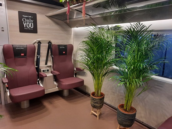 Los pasajeros también tienen a su disposición la clase es ‘Singular Café by Only You’, que nace de la alianza de Iryo con Only You Hotels. Esta opción de viaje se encuentra en los coches 3, 4 y 5 y entre sus principales características destaca el espacio de trabajo en equipo o individual con el que cuenta, asientos gran confort, acceso a espacios exclusivos en los Hoteles Only You y un Menú Haizea Mercado de cocina tradicional.
