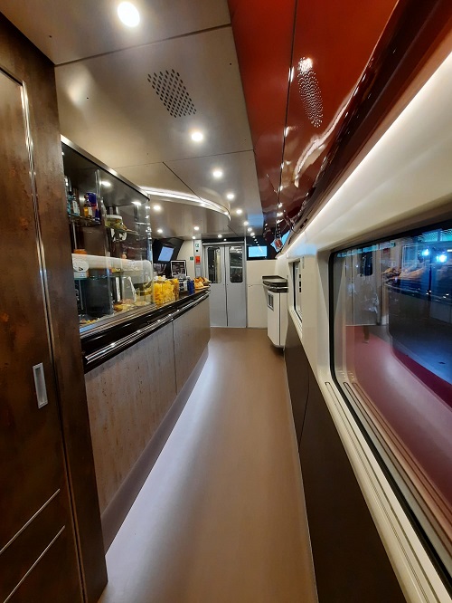 A bordo, un restaurante con cuarenta asientos, ofrecerá elaboraciones de producto de temporada y opciones saludables, primeras marcas de bebidas y carta de vinos seleccionada que irá cambiando en colaboración con Denominaciones de Origen españolas. La clase ‘Infinita’, los coches 1 y 2, incluye todos los servicios premium, con asientos gran confort y gastronomía de alta calidad con el Menú Haizea Bistró en el que se da la opción de elegir entre varias opciones.