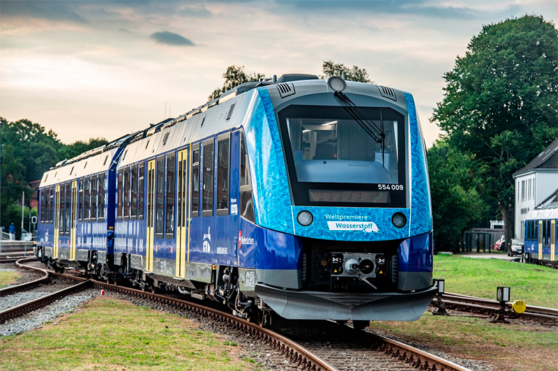 Una unidad Coradia iLint de Alstom, impulsado por baterías de hidrógeno, ha recorrido 1.175 kilómetros con un solo depósito de combustible. en un recorrido por Alemania, de norte a sur, desde el Mar del Norte hasta la frontera con Austria.