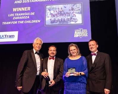 Las Jornadas Escolares del Tranvía, organizadas conjuntamente por el Ayuntamiento y Los Tranvías de Zaragoza, han obtenido el premio “Best Environmental & Sustainability Initiative” (Mejor Iniciativa de Sostenibilidad y Medio Ambiente) en la gala de los Global Light Rail Awards celebrada en Londres, el evento internacional más importante en el ámbito tranviario.