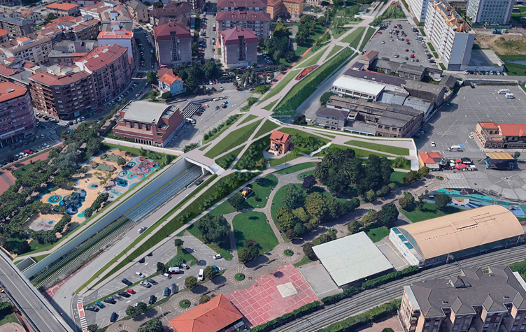 La cubierta generará un nuevo espacio público accesible de aproximadamente 17.500 metros cuadrados, que se urbanizará con mobiliario y dotaciones urbanas, como bancos, farolas, áreas recreativas, etcétera y se integrará en el entorno mediante itinerarios peatonales aptos para personas con movilidad reducida. El nuevo espacio verde conectará con los parques de Cros y Lorenzo Cagigas.