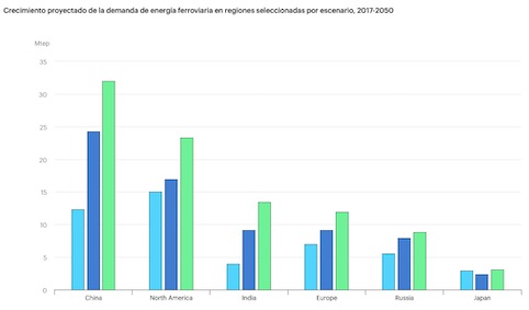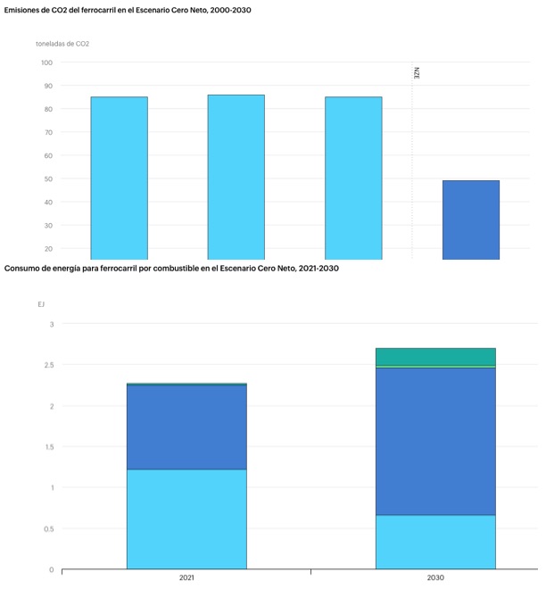 Más allá de los avances en eficiencia energética y las reducción de emisiones es necesario un cambio modal hacia desplazamientos de cero emisiones y transporte público y de bajas emisiones. En la próxima década, la cuota de mercado de esos modos debe aumentar en más del 40 por ciento y los flujos logísticos de mercancías deberán aprovechar el potencial del ferrocarril. Las estimaciones basadas en el World Energy Outlook de la Agencia Internacional de Energía señalan un potencial de reducción de emisiones de dióxido de carbono hasta 2050 de 460 Mt.