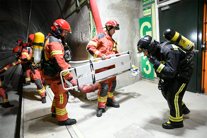 El ejercicio, que forma parte de las pruebas previas a la puesta en servicio de esta infraestructura, ha simulado una avería técnica con conato de incendio en el tren resultando herido uno de los maquinistas, en el interior de uno de los tubos de los túneles de base de veinticinco kilómetros, cerca de su boca sur.