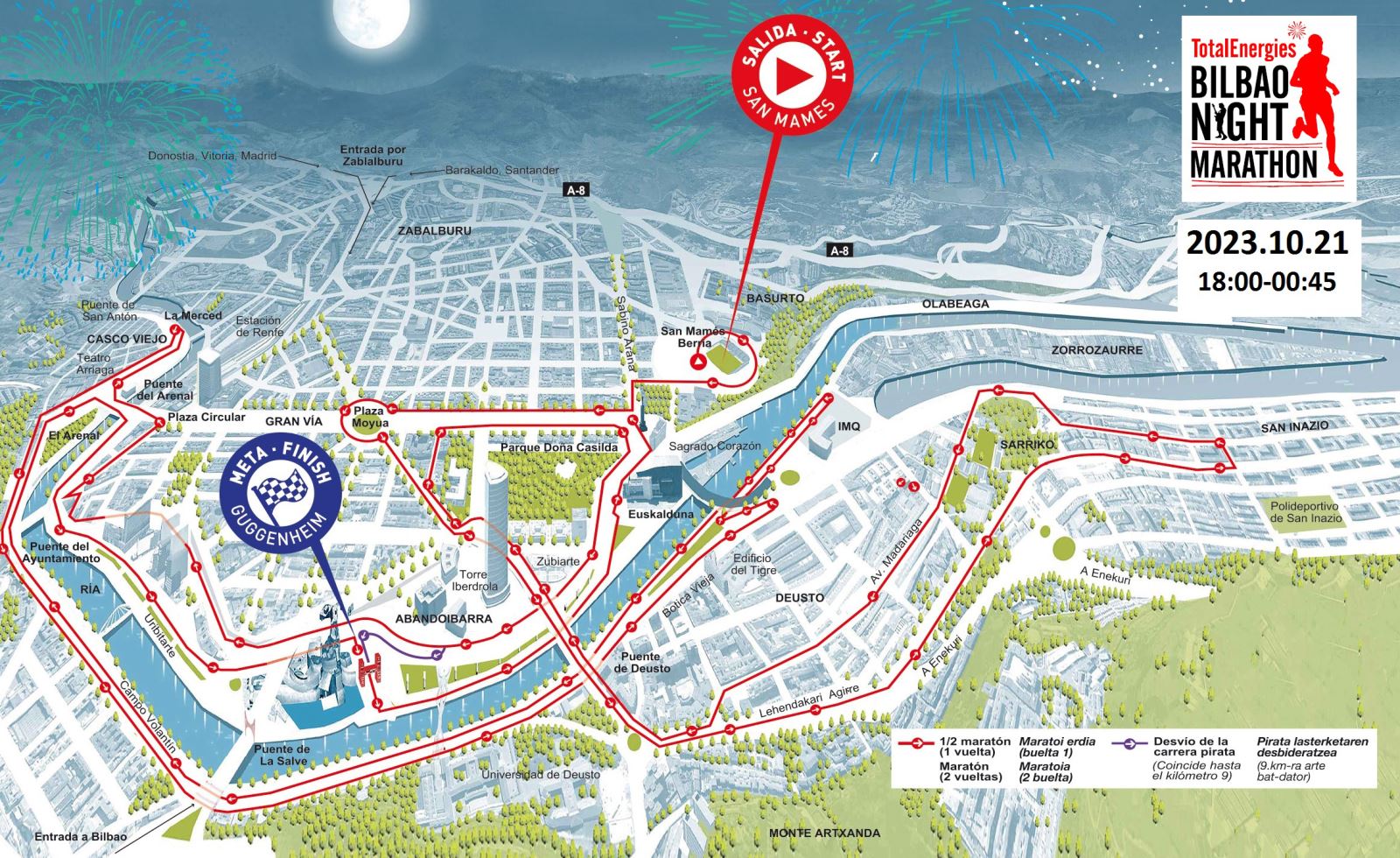 Debido a la celebración de la ‘Bilbao Night Marathon’, el sábado 21 de octubre Euskotren adelantará la finalización del servicio del tranvía para dejar paso a la carrera. A partir de las 17:54 horas el tranvía no podrá circular por las calles de Bilbao y, por tanto, el servicio quedará suprimido en todo su recorrido hasta la mañana siguiente. El tranvía efectuará las últimas salidas en el siguiente horario: Bolueta - La Casilla: 16:58 horas y La Casilla - Bolueta: 17:23 horas.