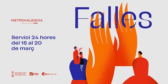 Metrovalencia ampliará este fin de semana el servicio nocturno ‘A la lluna de Metrovalencia' hasta las 3:30-4:00 horas de la madrugada por la celebración de los conciertos de Fallas 2024. Además, se reforzarán las frecuencias diurnas de las líneas 1, 2 y 9 de 10:30 a 21:00, especialmente de 12.30 a 15:00 horas por las mascletás. En estas franjas las unidades circularán irán a doble composición. Otro de los cambios para estas fiestas es que la línea 1 prolongará su destino de Torrent a Picassent.