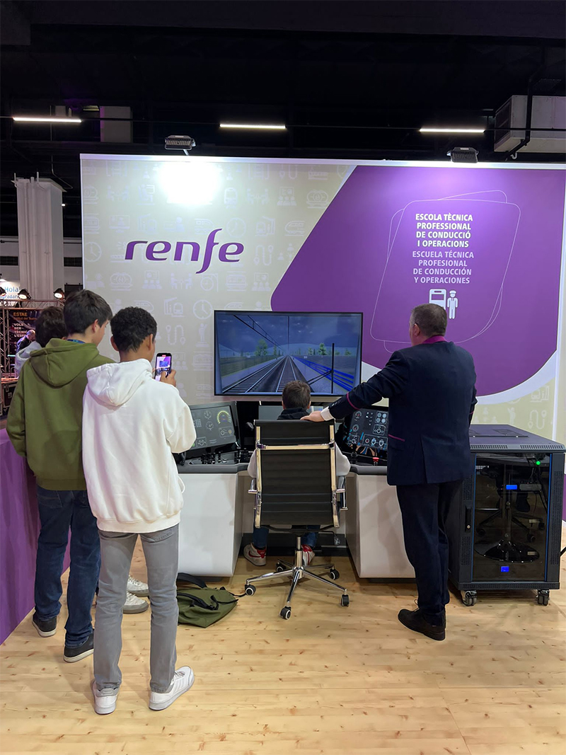 Renfe ha participado un año más en el ‘Saló de l’Ensenyament’ para promocionar su catálogo formativo y laboral. En esta feria, ha informado a los estudiantes sobre las diferentes profesiones ferroviarias.