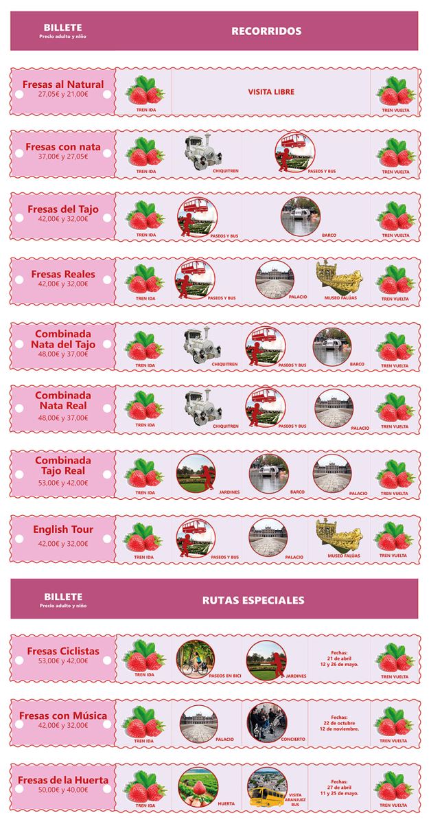 • ‘Fresas de la Huerta’: los días 27 de abril, 11 y 25 de mayo se ofrece esta nueva ruta especial que incluye una visita guiada a las huertas históricas y al Centro de Interpretación de la Huerta de Aranjuez, además de un recorrido guiado a pie por los jardines históricos del Parterre y la Isla.
