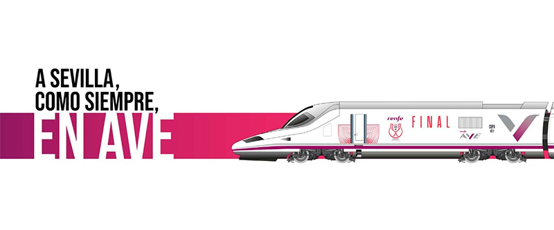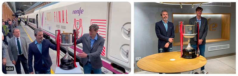 Para la ocasión, Renfe ha vinilado la locomotora del tren de alta velocidad que ha trasladado el trofeo desde Madrid a Sevilla Santa Justa, con el que han viajado los exjugadores de ambos equipos Leo Franco y Rafa Alkorta, junto a representantes de la Real Federación Española de Fútbol y de la operadora. Renfees ‘Tren Oficial’ de esta final.