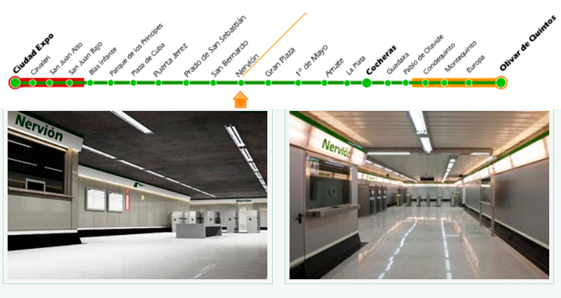 En la ampliación, se han incorporado a la línea tres nuevas paradas: San Francisco Javier, Eduardo Dato y Luis de Morales, esta última provisional hasta la construcción de la definitiva en Kansas City. Las paradas disponen de las correspondientes marquesinas, seis máquinas expendedoras de billetes y para recargas de tarjetas, cinco teleindicadores de información al usuario, sistema de megafonía e interfonía y dieciséis cámaras de videovigilancia.