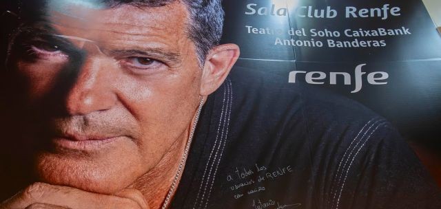 Renfe ha tematizado la Sala Club de la estación de Málaga con un montaje decorativo especial en torno a la historia del Teatro del Soho Caixa Bank, un espacio artístico y creativo único al que desplazarse en trenes AVE, del que es propietario el actor malagueño.