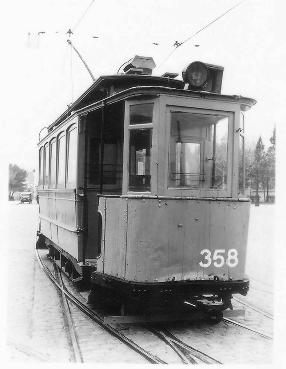 El tranvía 358 fue fabricado por la aragonesa Carde y Escoriaza, y prestó servicio entre 1904 y 1960. En 1940 la empresa Tranvías de Barcelona le hizo una primera transformación interior, para adaptar el hasta entonces tranvía de pasajeros a sus nuevas funciones como vehículo auxiliar dedicado al engrase de la línea aérea, si bien conservó su aspecto exterior. El modelo tiene 7,48 metros de longitud, dos de anchura y 3,2 de altura. Antes de su actual traslado al Museo de Mora la Nova, este tranvía fue trasladado al antiguo Museo de Castellar de N'Hug, desde donde regresó a TMB en 2006.