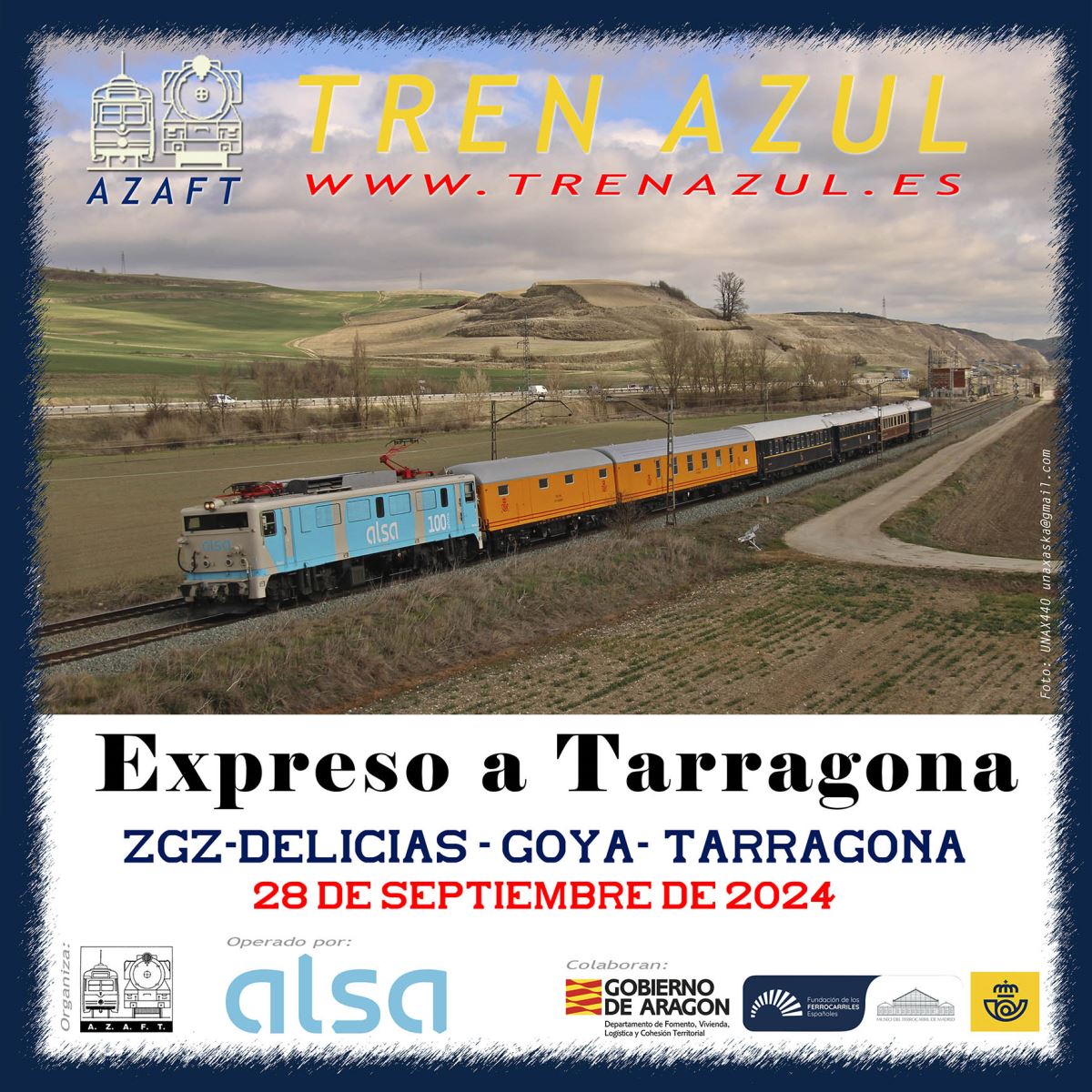 La Asociación Zaragozana de Amigos del Ferrocarril y los Tranvías pone de nuevo en vía su espectacular Tren Azul. Este sábado desde la terminal de Delicias a las 8:20 parte este tren hacia esta capital catalana.a donde llega a las 12. A su llegada los viajeros podrán organizar su visita a la ciudad o su estancia en la playa. Como complemento al viaje, puede optar a una visita guiada de dos horas de duración. Con inicio en la estación de Tarragona y final en el Balcón del Mediterráneo, visitando exteriormente el Teatro Romano, el Circo y la Catedral. Todos los datos en la web de Azaft