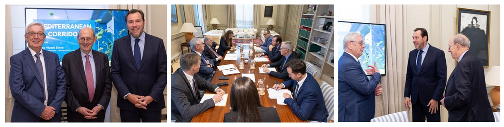 El ministro de Transportes y Movilidad Sostenible, Óscar Puente, se ha reunido con los coordinadores europeos de los Corredores Atlántico y Mediterráneo, Carlo Secchi y Mathieu Grosch.