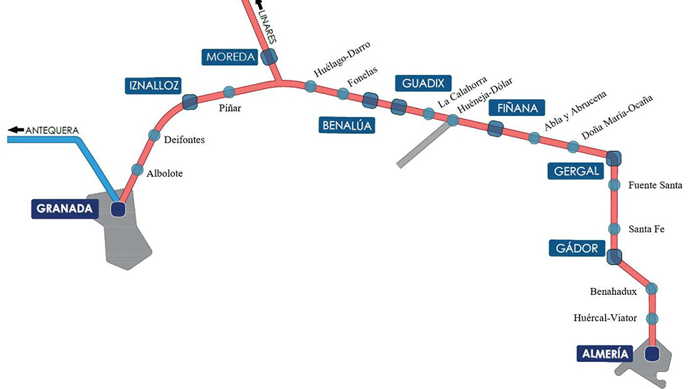 Adif ha adjudicado por 17,2 millones de euros la redacción de los proyectos para la renovación integral y acondicionamiento de 180 kilómetros de la línea entre Granada y Almería, en concreto entre Moreda-Granada y entre Linares/Baeza-Almería.