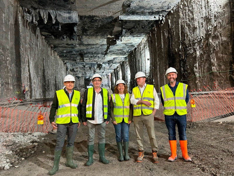 La consejera de Movilidad Sostenible, Susana García Chueca, ha visitado la caverna, junto con el viceconsejero de Infraestructuras y Transportes, Miguel Ángel Páez, el director general de ETS, Antonio López, y el alcalde de Pasajes, Teo Alberro. Allí han podido comprobar cómo han concluido los trabajos de colocación de los muros pantalla y la losa superior, que han ejercido de ‘cajón’ para poder completar la excavación.