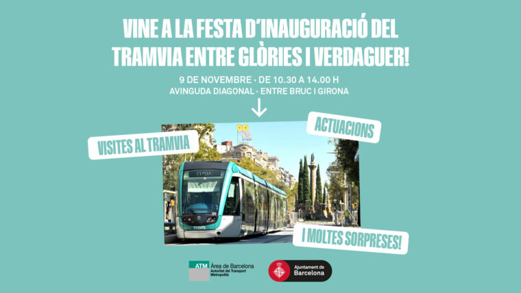 La puesta en marcha del Tram por la Diagonal entre Glòries y Verdaguer, el sábado, 9 de noviembre, se celebrará con una fiesta ciudadana organizada por el Ayuntamiento de Barcelona con actividades para todos los públicos.