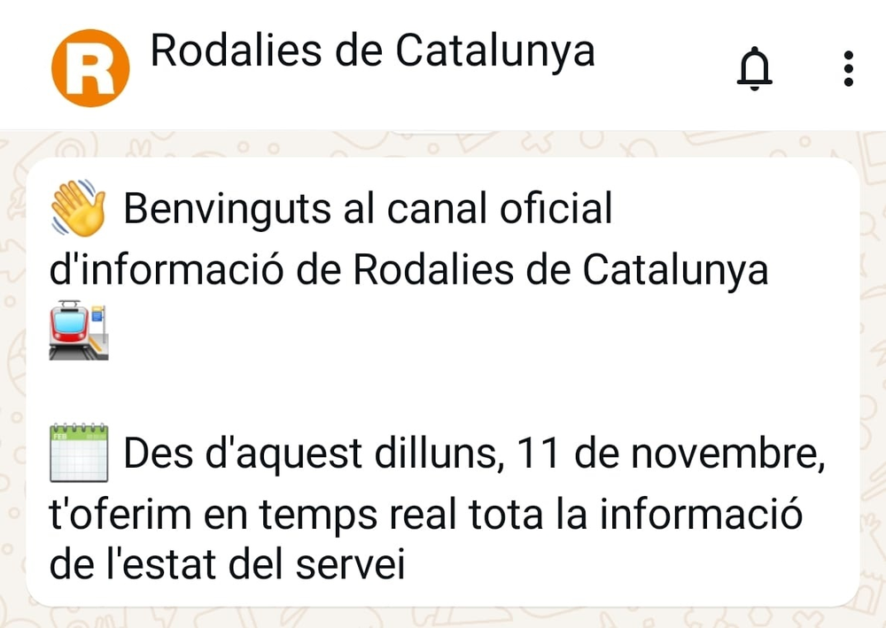 Desde el pasado lunes, Renfe ha puesto en marcha en marcha un nuevo canal de información en la red de cercanías de Cataluña para informar a sus usuarios en tiempo real a través de la aplicación de Whatsapp de todas las incidencias del servicio.