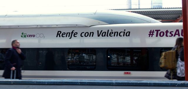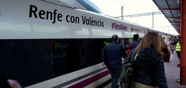 Renfe recuperó el pasado jueves el servicio de alta velocidad en la línea Madrid-Valencia, y lo hizo poniendo en marcha la iniciativa ‘Tren Solidario’, en colaboración con la Cruz Roja. El primer tren AVE que circuló en la relación partió a las 12.30 horas de la estación de Madrid Chamartín, con un coche adaptado para transportar 250 máquinas limpiadoras de agua a presión.