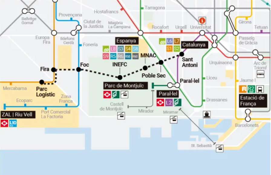 El acuerdo entre ambas instituciones incluye también la creación de nodos de transporte, como la conexión de la futura estación de la Sagrera Alta Velocidad con la línea 4. La estación Plaça d’Espanya será la primera de las grandes terminales intermodales.