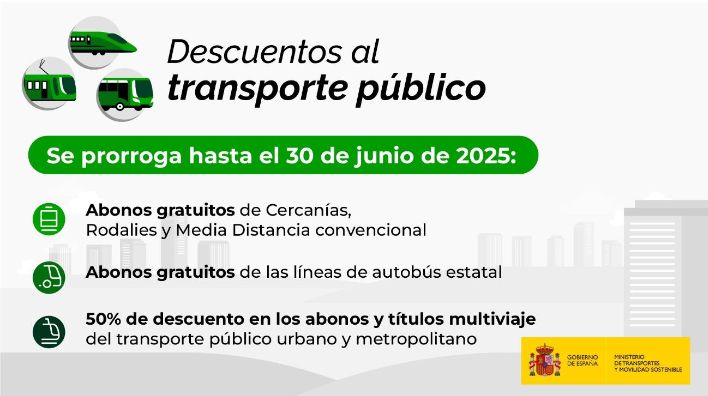 El pasado 23 de diciembre el Consejo de Ministros aprobó el Real Decreto-ley a través del que se prorrogan hasta el 30 de junio de 2025 los descuentos de hasta el 100 por cien del transporte público terrestre para viajeros habituales.