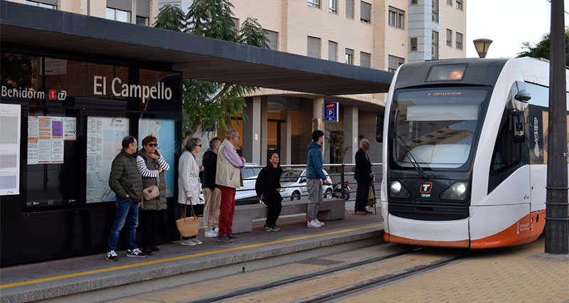 El tranvía de Alicante desplazó a 20.267.803 viajeros en 2024 por las cuatro líneas de tranvía, una de tren-tram y una de cercanías de su red, el mayor registro de sus 37 años de servicio en la provincia y un 11,36 por ciento más que en 2023, lo que supone un incremento de 2.074.941 usuarios anuales y volver a batir el récord de usuarios que ya obtuvo en el pasado ejercicio.