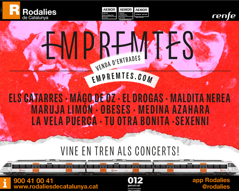 Renfe es el Tren Oficial de la cuarta edición del festival Empremtes, que incluye 39 conciertos de 37 artistas que se celebrarán, del 11 de enero al 31 de mayo, en doce salas de Barcelona, a las que se puede llegar cómodamente con los servicios de cercanías de Cataluña.