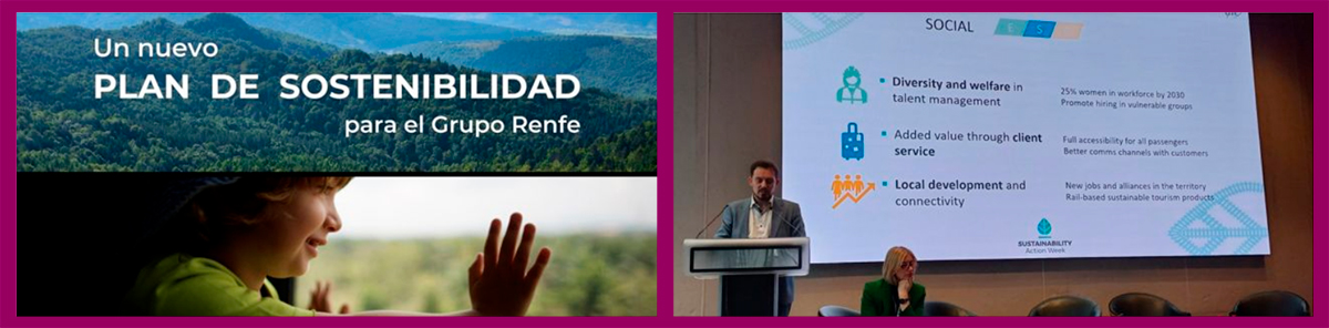 Renfe presentó el pasado lunes su nuevo Plan Director de Sostenibilidad que, con una perspectiva global y alineado con los estándares europeos, refuerza la vocación de servicio público de la operadora y la sitúa al frente de la movilidad sostenible, impulsando el desarrollo social, económico y medioambiental.