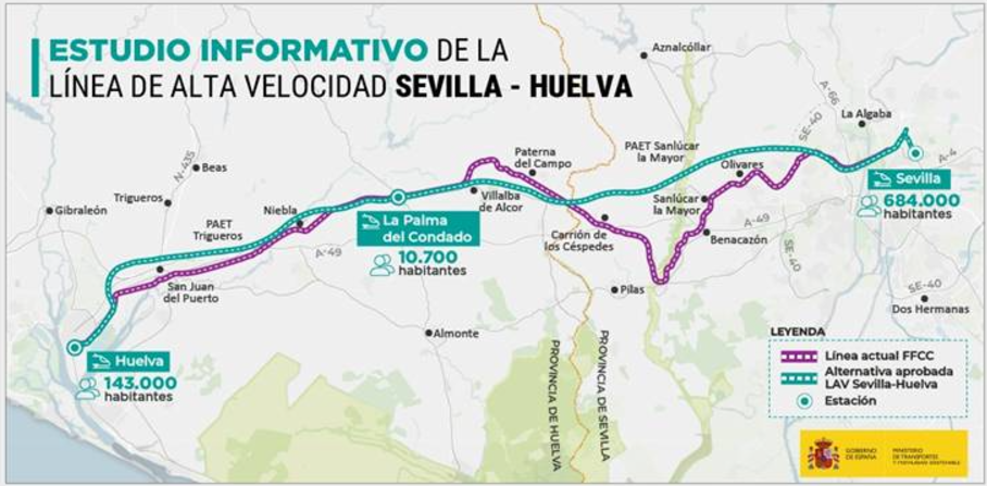 Además de mejorar la conectividad de Huelva con Sevilla, gracias a una significativa reducción de los tiempos de viaje por ferrocarril actuales, la nueva línea también mejorará la movilidad de Huelva y su provincia con el resto del país, al quedar integradas en la red de alta velocidad.
