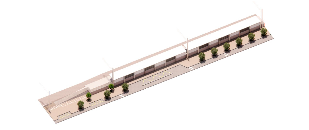 Asimismo, el proyecto incluye la ampliación del aparcamiento sobre la parcela adyacente, incluyendo la optimización de la capacidad del existente, así como todas las instalaciones auxiliares necesarias, el diseño de una planta fotovoltaica y la sustitución del transformador de servicios auxiliares de la subestación de tracción adyacente a la estación para realizar el vertido a red de la nueva instalación solar.